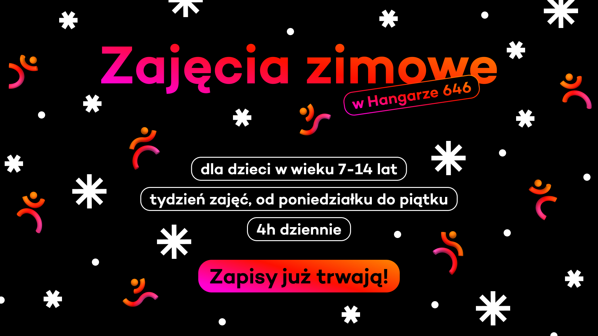❄️ Zapisy na zajęcia zimowe w Hangarze 646 ruszyły - zapisz się teraz! ❄️ W środę (31.12) jesteśmy otwarci w godzinach 10-18! W dniu 01.01 jesteśmy zamknięci!