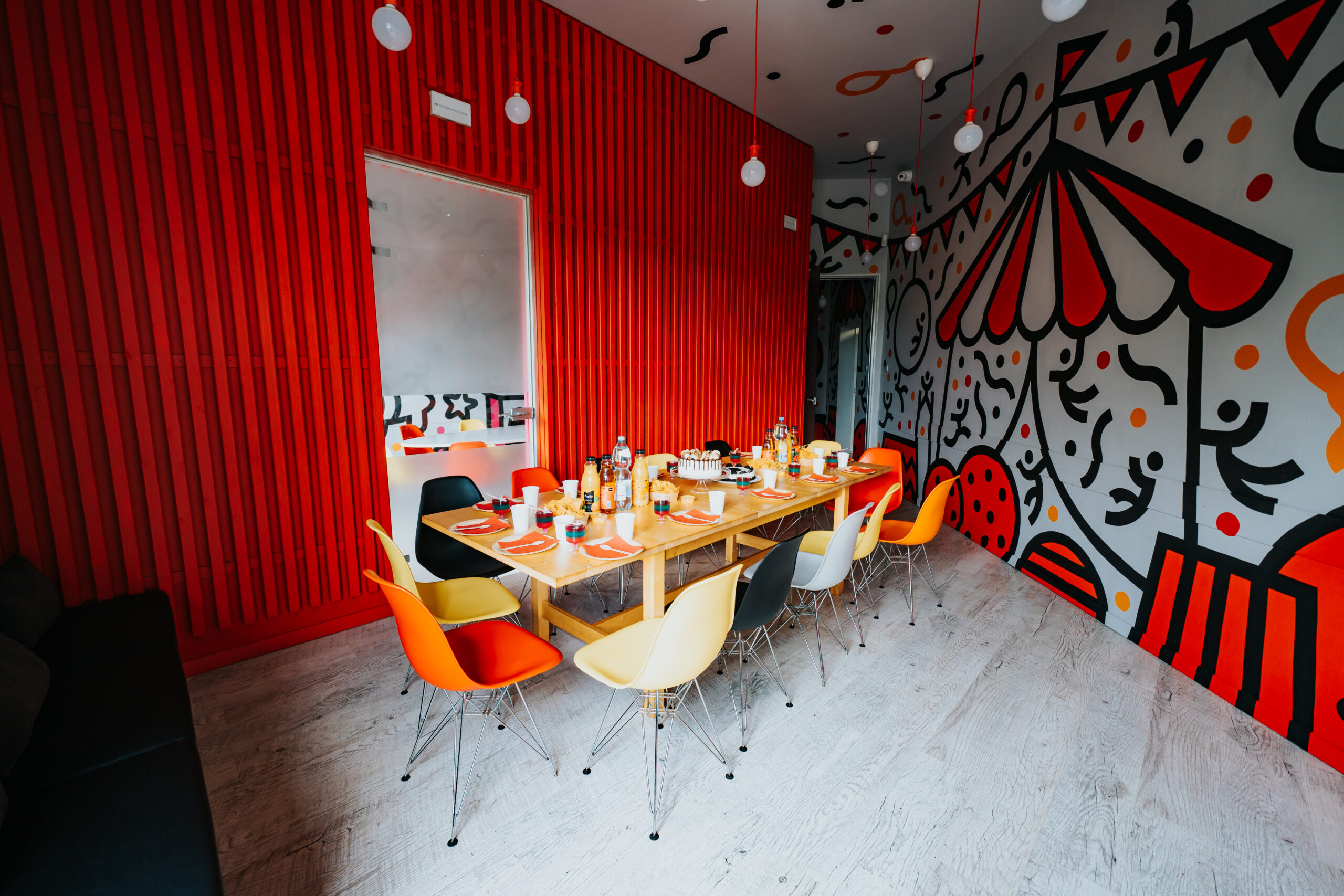 To sala pełna kolorów i radosnego klimatu, przypominającego bajki Nasze magiczne Encanto czy Trolle – wesołe, rodzinne i pełne pozytywnych emocji. Sprawdzi się idealnie dla dzieci, które lubią zabawę, śmiech i odgrywanie swoich małych ról podczas urodzinowych przygód.